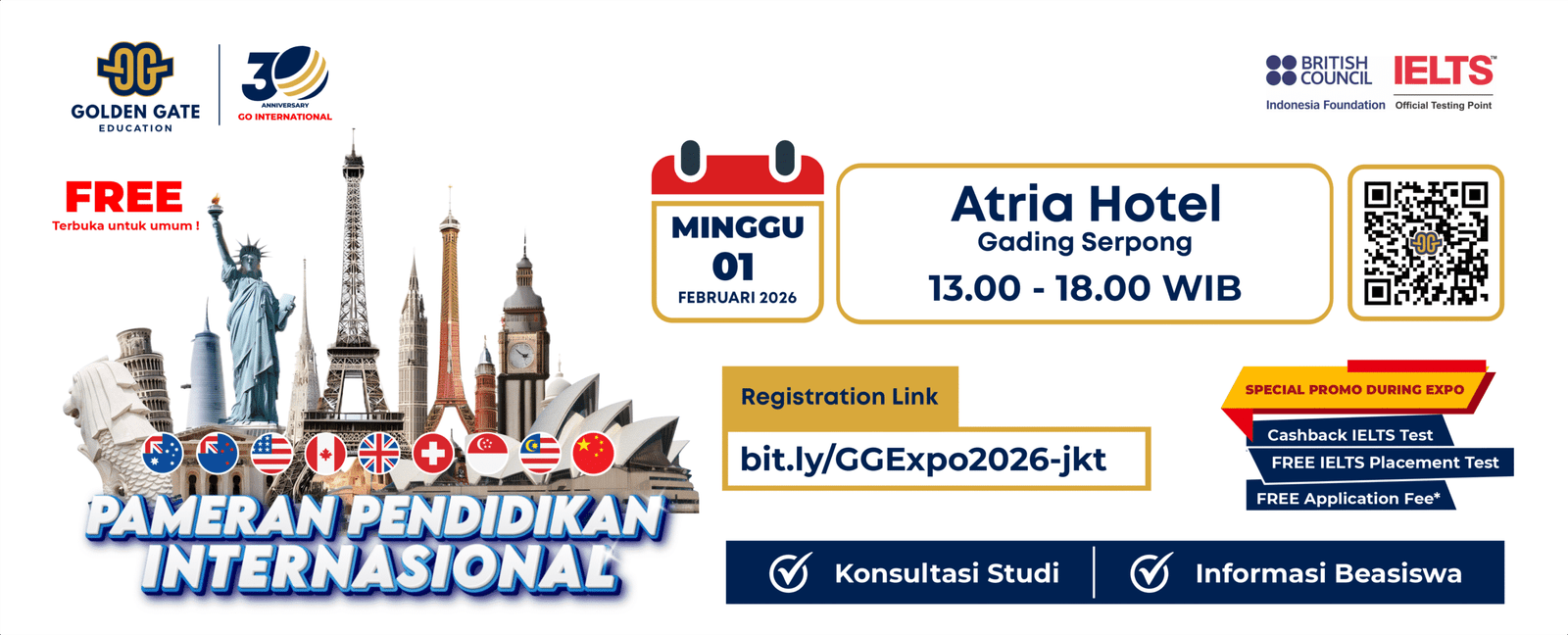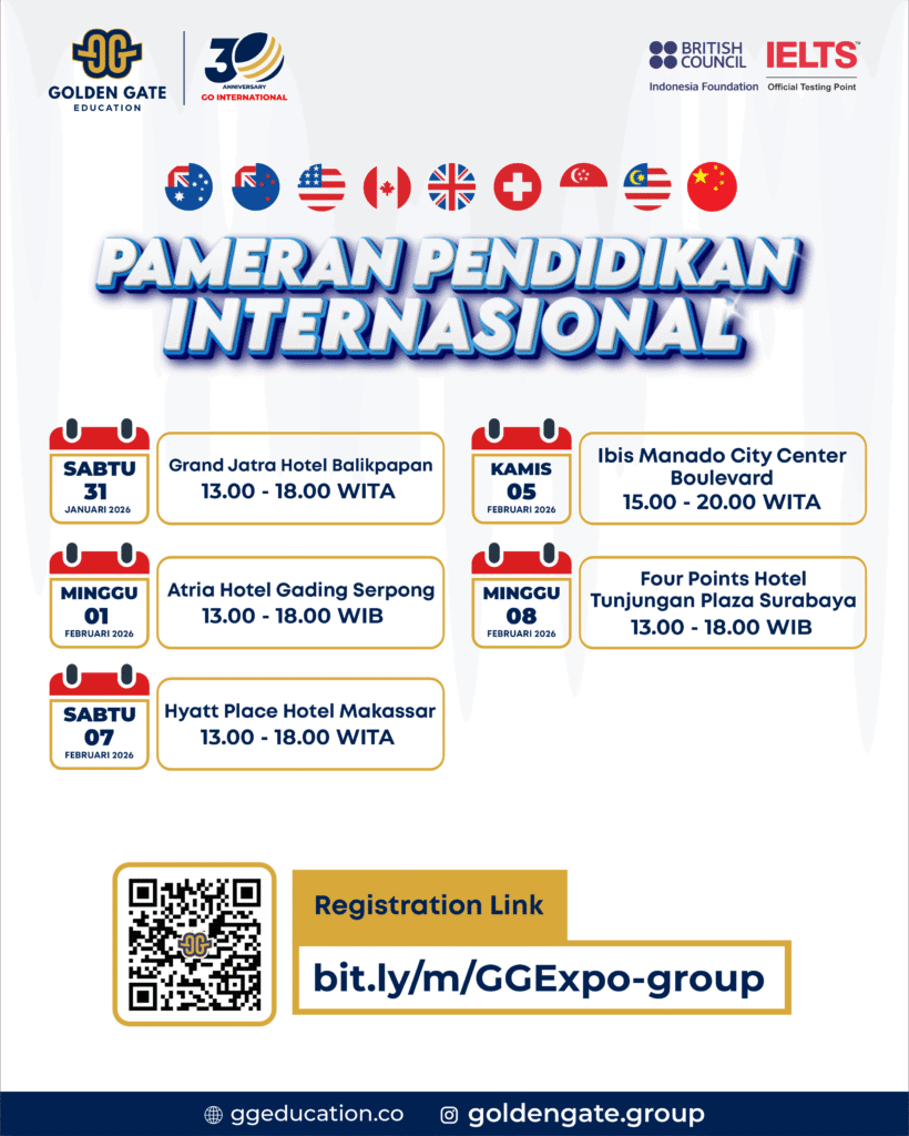 Since 1996, Golden Gate Education has been guiding students towards their dreams of studying abroad. As a trusted overseas educational consultancy agency, we specialise in connecting Indonesian students with world-class universities and programs across the globe.