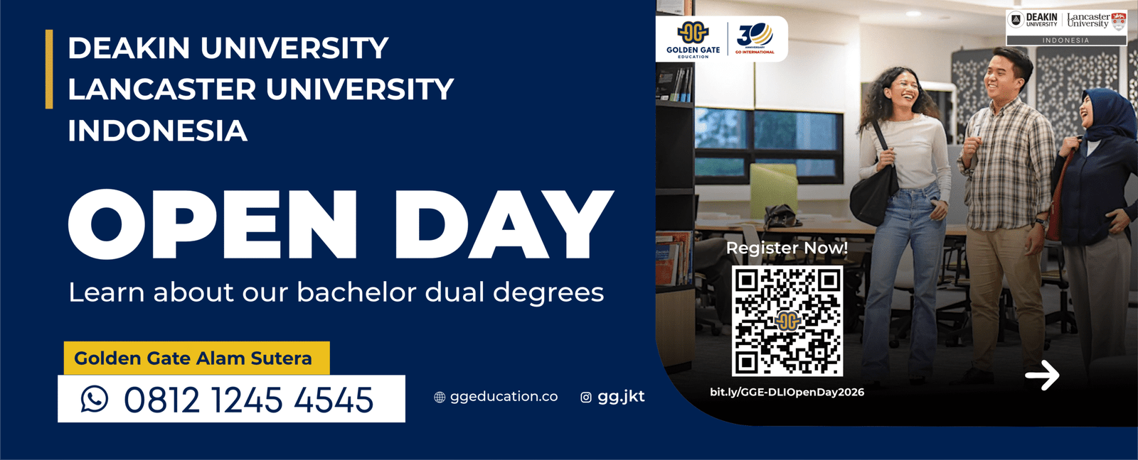 Since 1996, Golden Gate Education has been guiding students towards their dreams of studying abroad. As a trusted overseas educational consultancy agency, we specialise in connecting Indonesian students with world-class universities and programs across the globe.