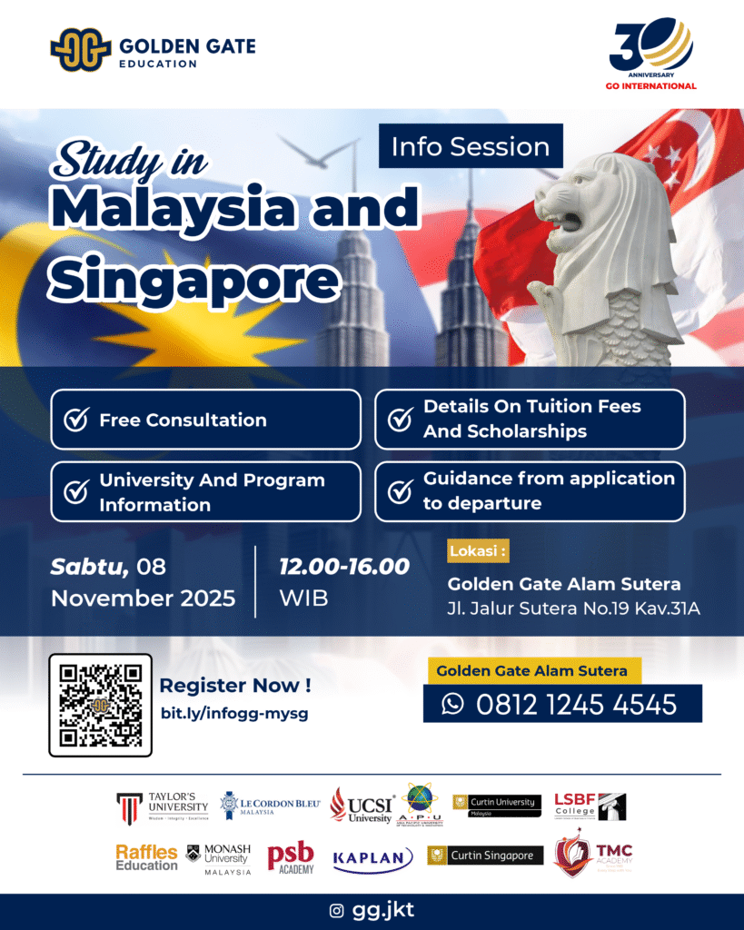 Since 1996, Golden Gate Education has been guiding students towards their dreams of studying abroad. As a trusted overseas educational consultancy agency, we specialise in connecting Indonesian students with world-class universities and programs across the globe.